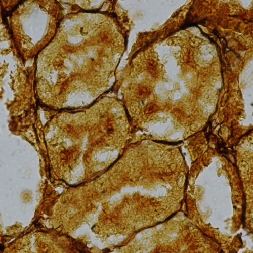 In contrast to epithelium, which contains no or little extracellular material, supporting tissues consists mainly of extracellular matrix (ECM) in which a few cells are imbedded. The extracellular matrix consists of at least 19 different types of collagens, the related fibrous proteins known as elastin and fibrillin, a series of glycosaminoglycans (GAGs) and extracellular structural glycoproteins. |