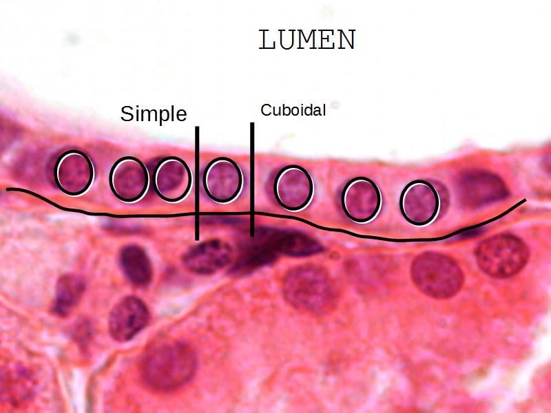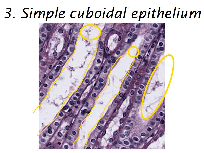 - Simple cuboidal epithelium: Slide 76