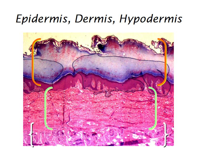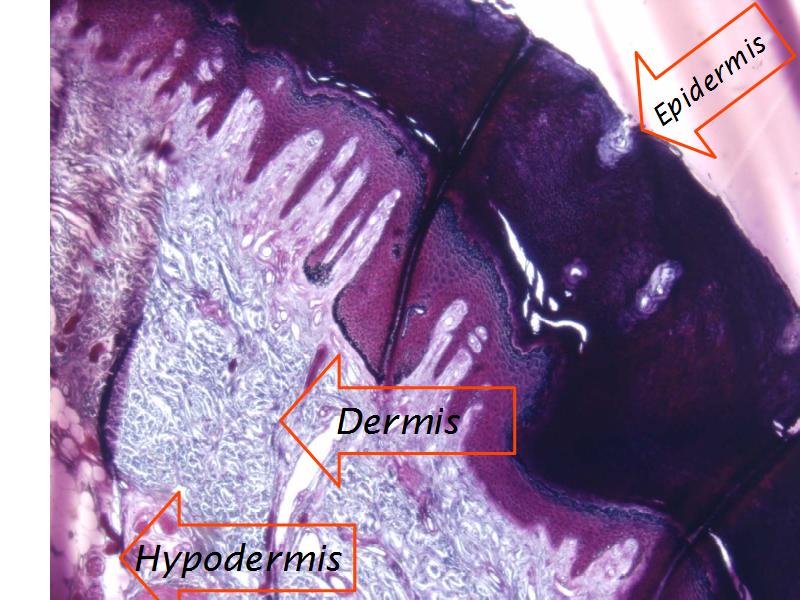 - A very thick light pink area - the hypodermis.