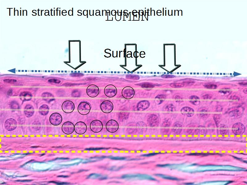 - Thin stratified squamous unkeratinizing epihelium: Slide 29