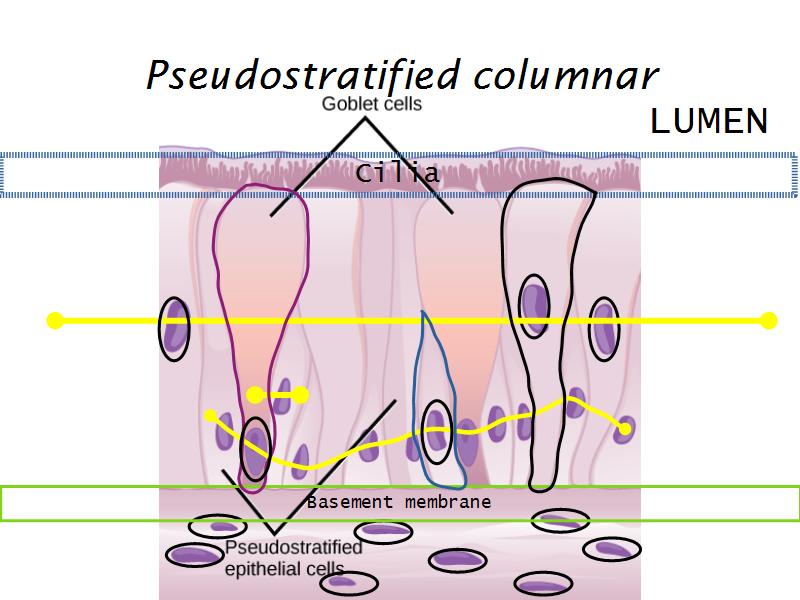 - Pseudostratified ciliated columnar epithelium: Slide 73