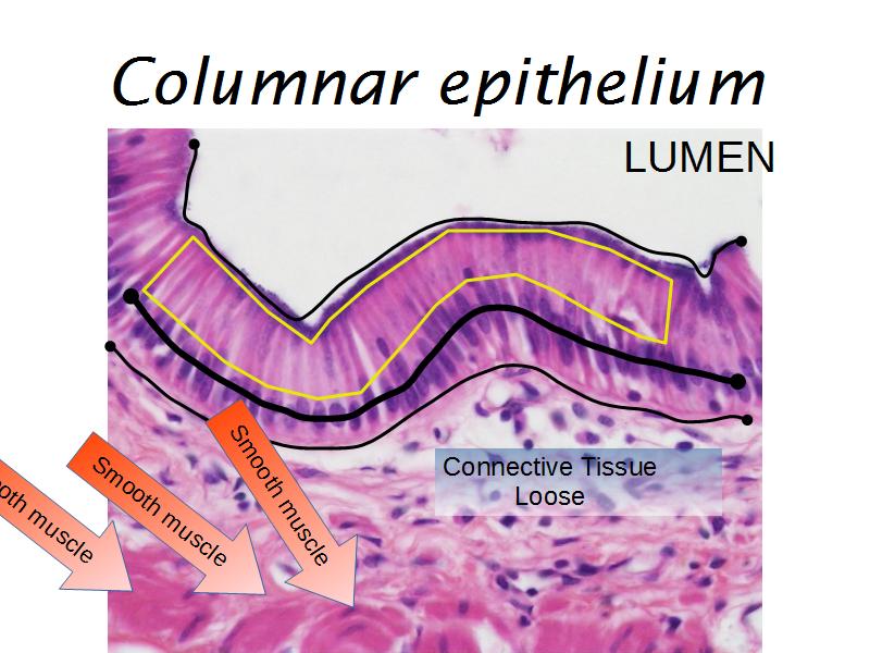 - Simple columnar epithelium: Slide 58